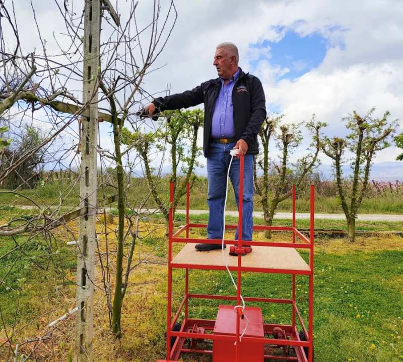Ευφυέστατος αγρότης από το Μακροχώρι Ημαθίας, ο κ. Δήμος Γιαννακοβίτης, έφτιαξε μόνος του πατέντα με την οποία κλαδεύει τα δέντρα πανεύκολα και γρήγορα, χωρίς να ανεβοκατεβαίνει τη σκάλα.