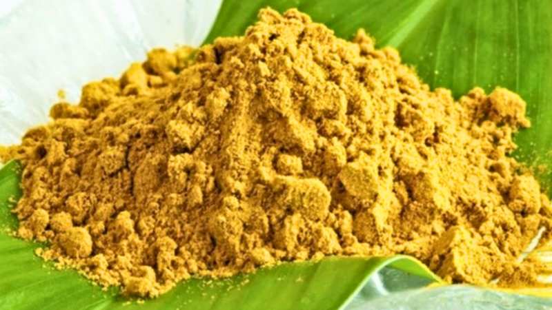 Είναι ένα μπαχαρικό με κίτρινο χρώμα το οποίο αποτελείται από ενώσεις που ονομάζονται κουρκουμινοειδή από τις οποίες η σημαντικότερη και ευρέως διαδεδομένη είναι η κουρκουμίνη.